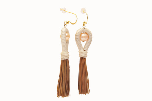 Pine Needle Tassle with Fresh water Pearls | Pine Needle Earrings
